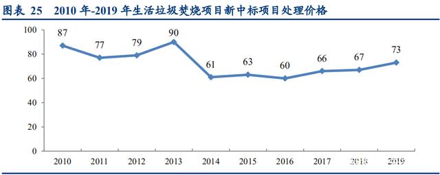 从上图可以看出,2016 年之后,垃圾焚烧项目新中标项目处理价格逐步回升,低价中标情况逐步减少,Yy易游体育认为原因主要是: