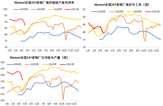 3月19日市场盛传的唐山限产公告已经正式颁布。唐山市发布关于钢企限产减排措施的草案。据Mysteel理论测算,当前唐山地区铁水影响约10.6万吨左右(不含长期停产和已淘汰的生产装备),日度产能利用率为72.98%,如果按照文件落地执行,3月20日--6月30日,唐山日均影响铁水约11.53万吨,高炉产能利用率将维持在70.61%,较当前下降2.37%;7月1日--12月31日,日均影响铁水产量约10.06万吨,产能利用率将维持在74.37%,较上一阶段上升3.76%。