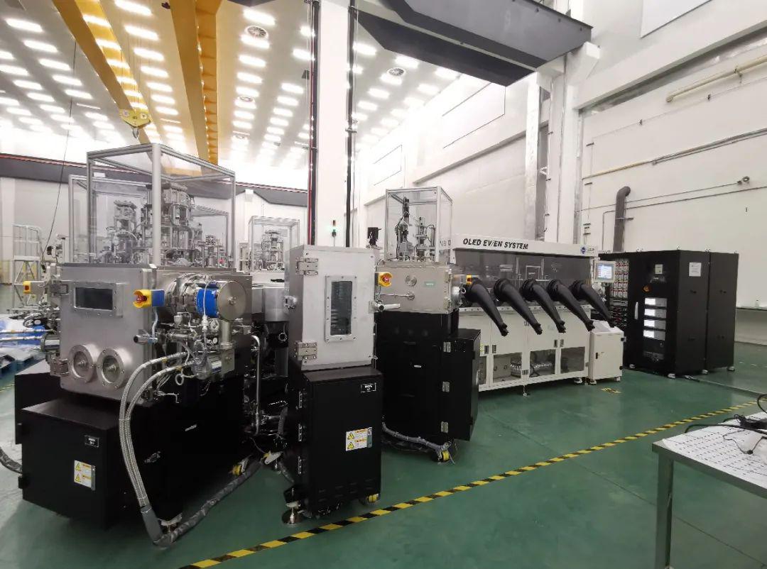 Factory gate and robot production workshop (one row); OLED evaporation machine production test workshop and OLED evaporation packaging equipment (two rows)