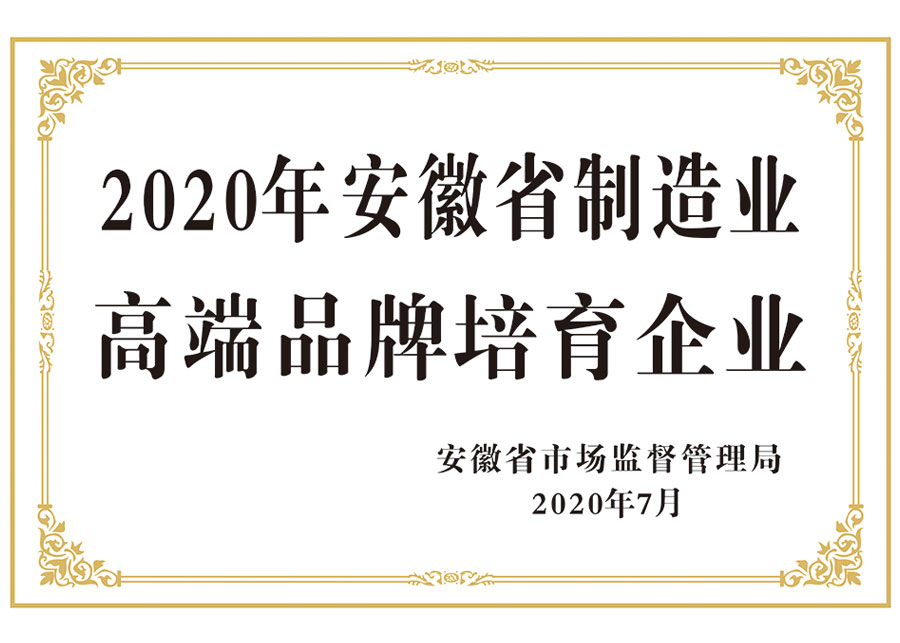2020安徽省制造业高端品牌培育企业