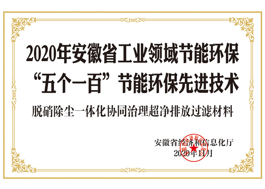 2020 安徽省工业领域节能环保“五个一百”节能环保先进技术