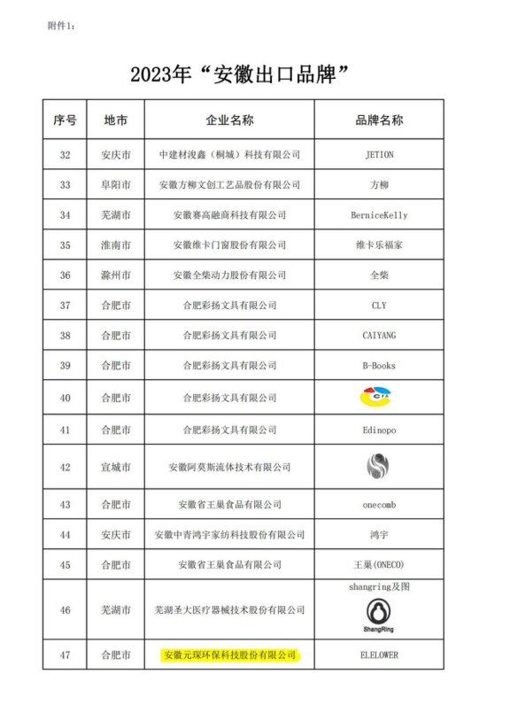 2023“安徽出口品牌”