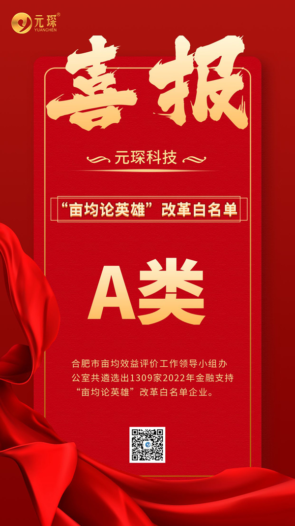 根据《关于做好金融支持“亩均论英雄”改革工作的通知》(皖经信运行函〔2022〕71号)《合肥市金融支持“亩均论英雄”改革白名单制度》(合亩均办〔2022〕5号)文件规定,合肥市亩均效益评价工作领导小组办公室共遴选出1309家白名单企业,Yy易游体育科技被评为A类企业。