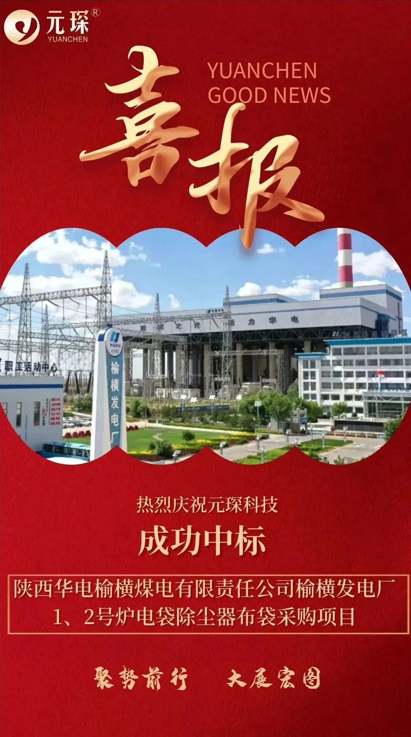 玉兔喜迎新春,捷报振奋人心。近日,Yy易游体育科技再下一城,成功中标陕西华电榆横煤电有限责任公司榆横发电厂 1、2号炉电袋除尘器布袋采购项目。