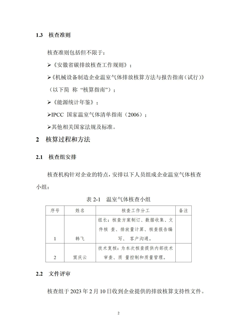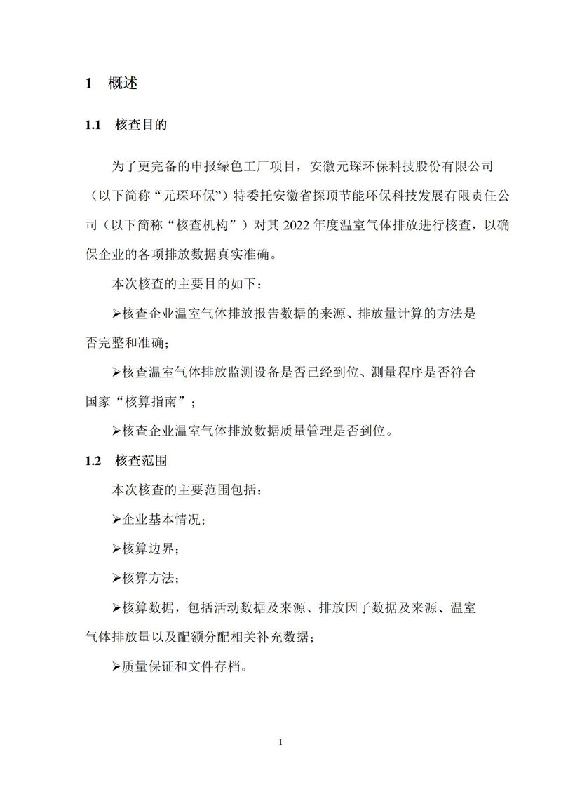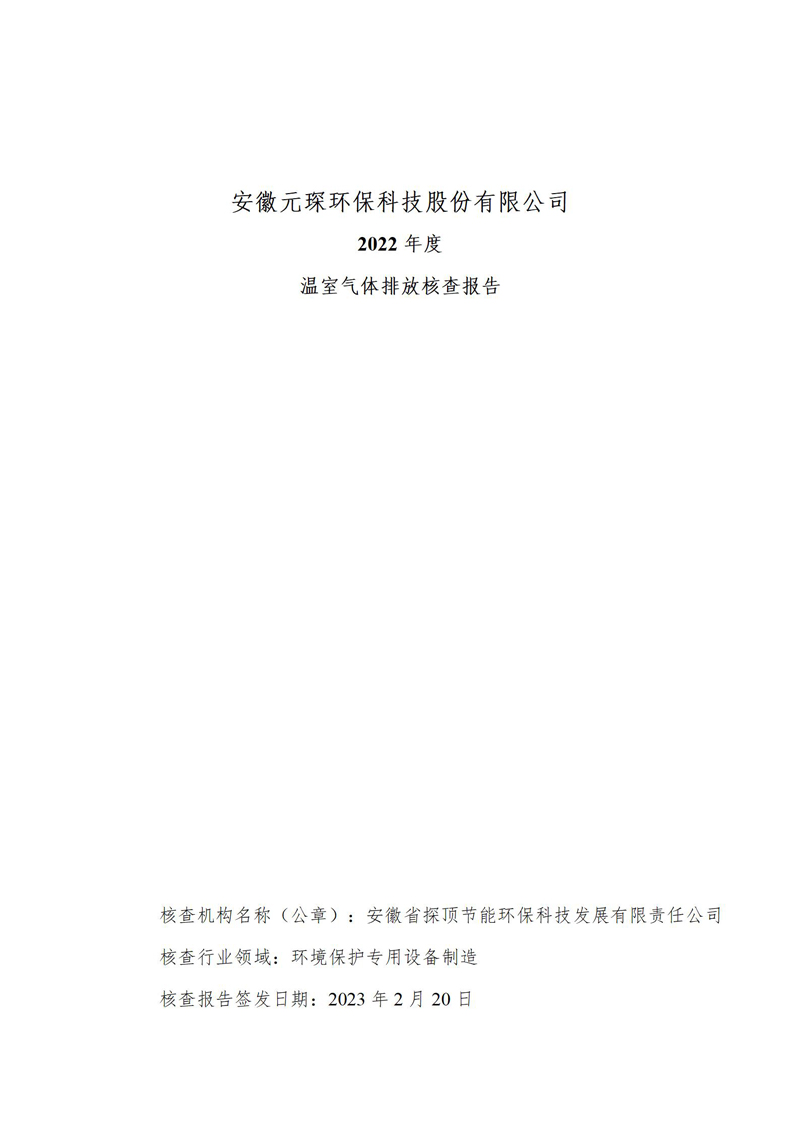 安徽Yy易游体育环保科技股份有限公司2022年度温室气体排放核查报告
