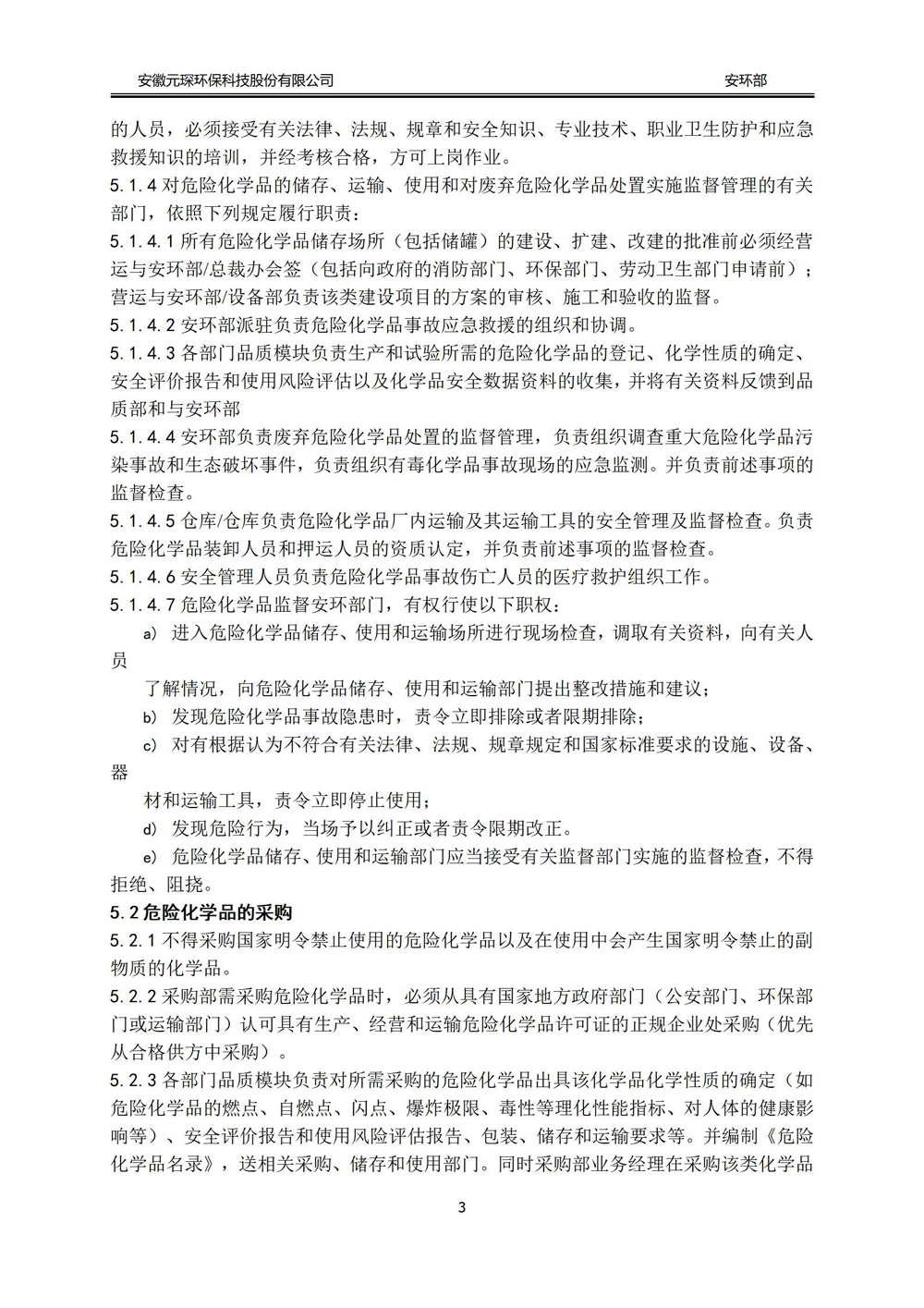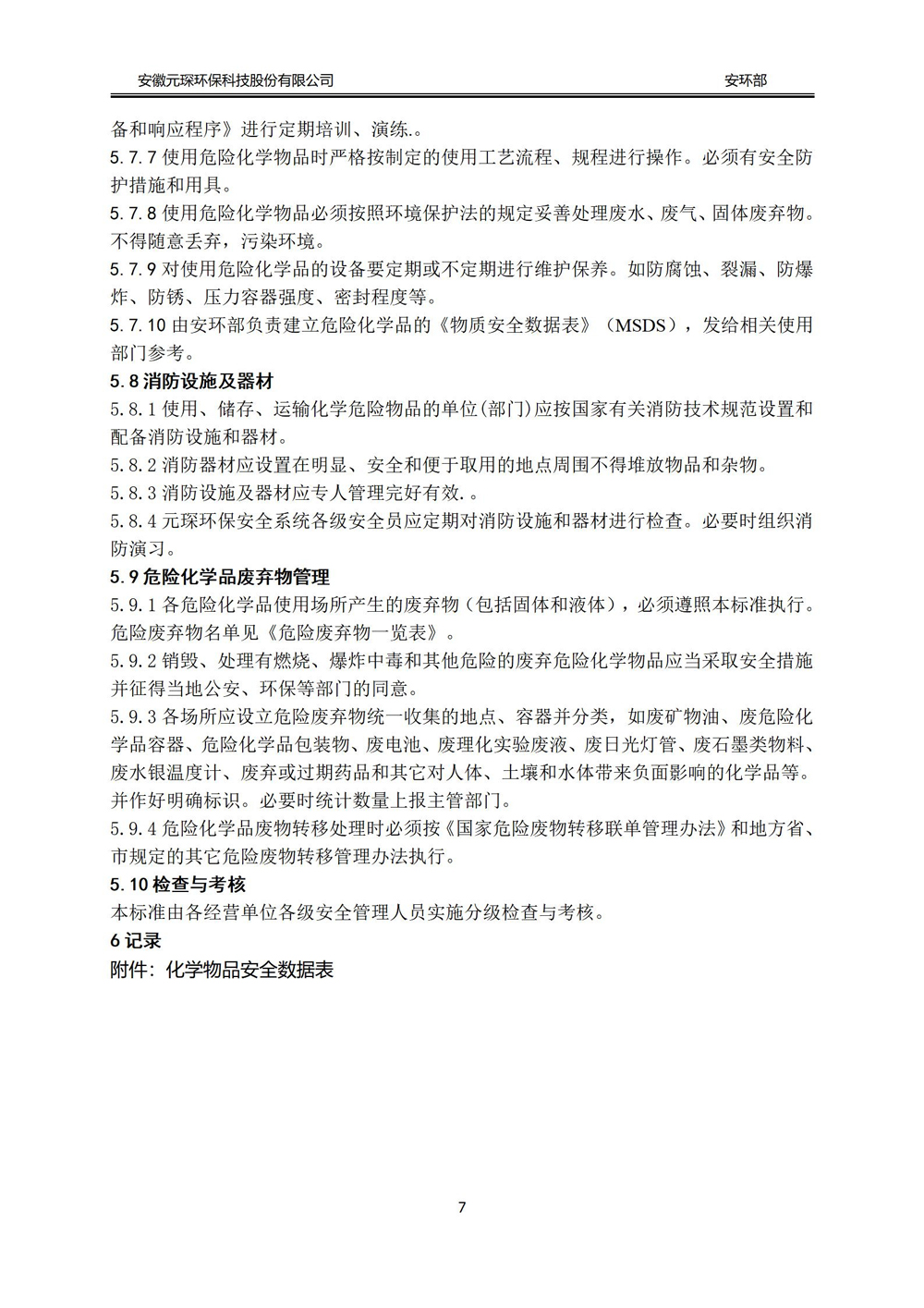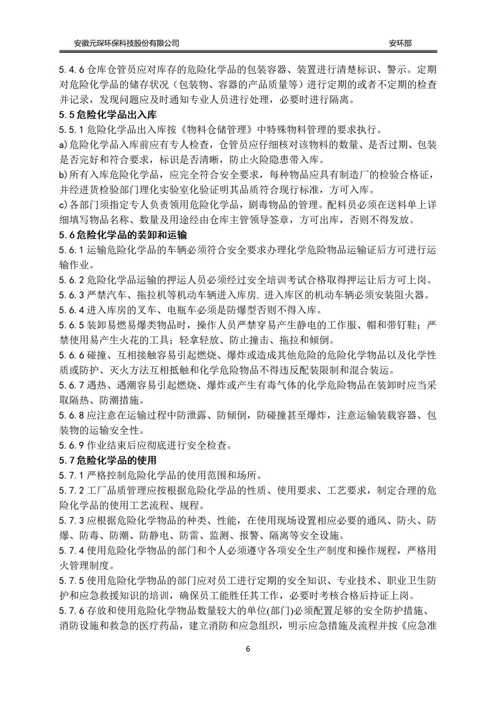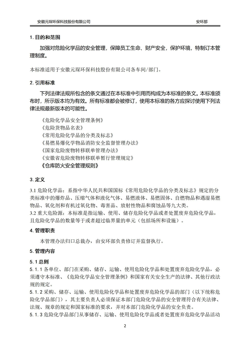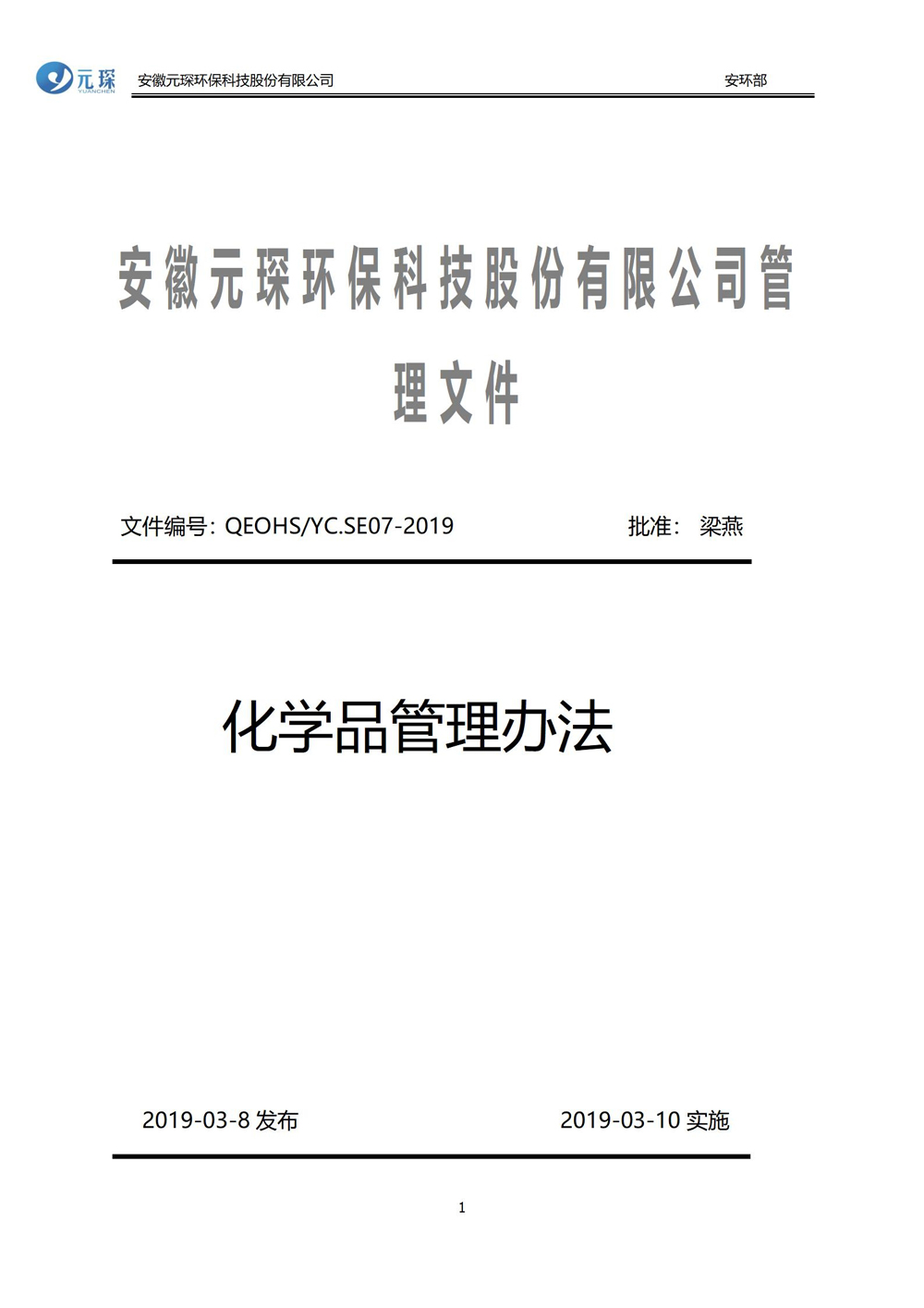 安徽Yy易游体育环保科技股份有限公司化学品管理办法
