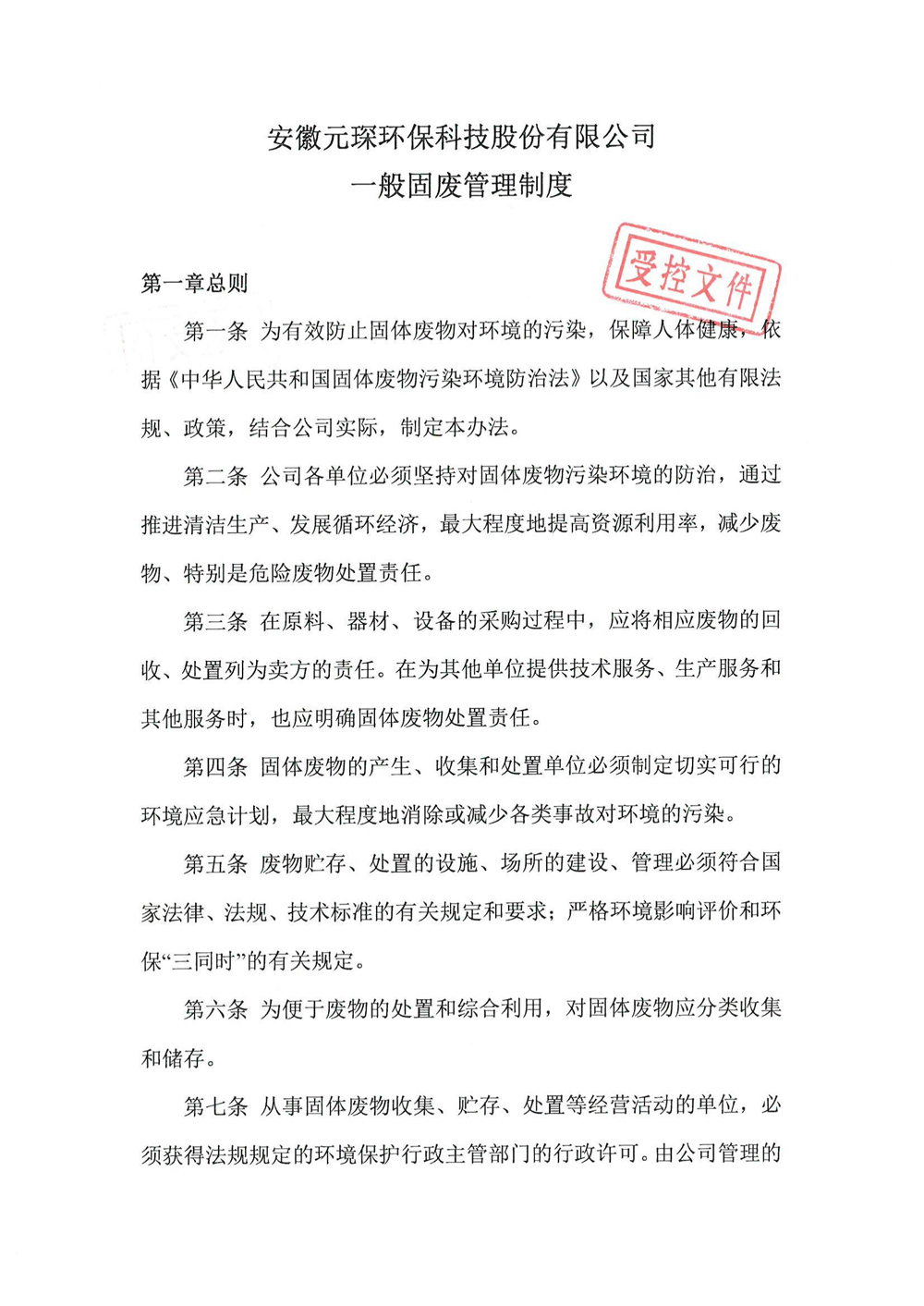 安徽Yy易游体育环保科技股份有限公司一般固废管理制度