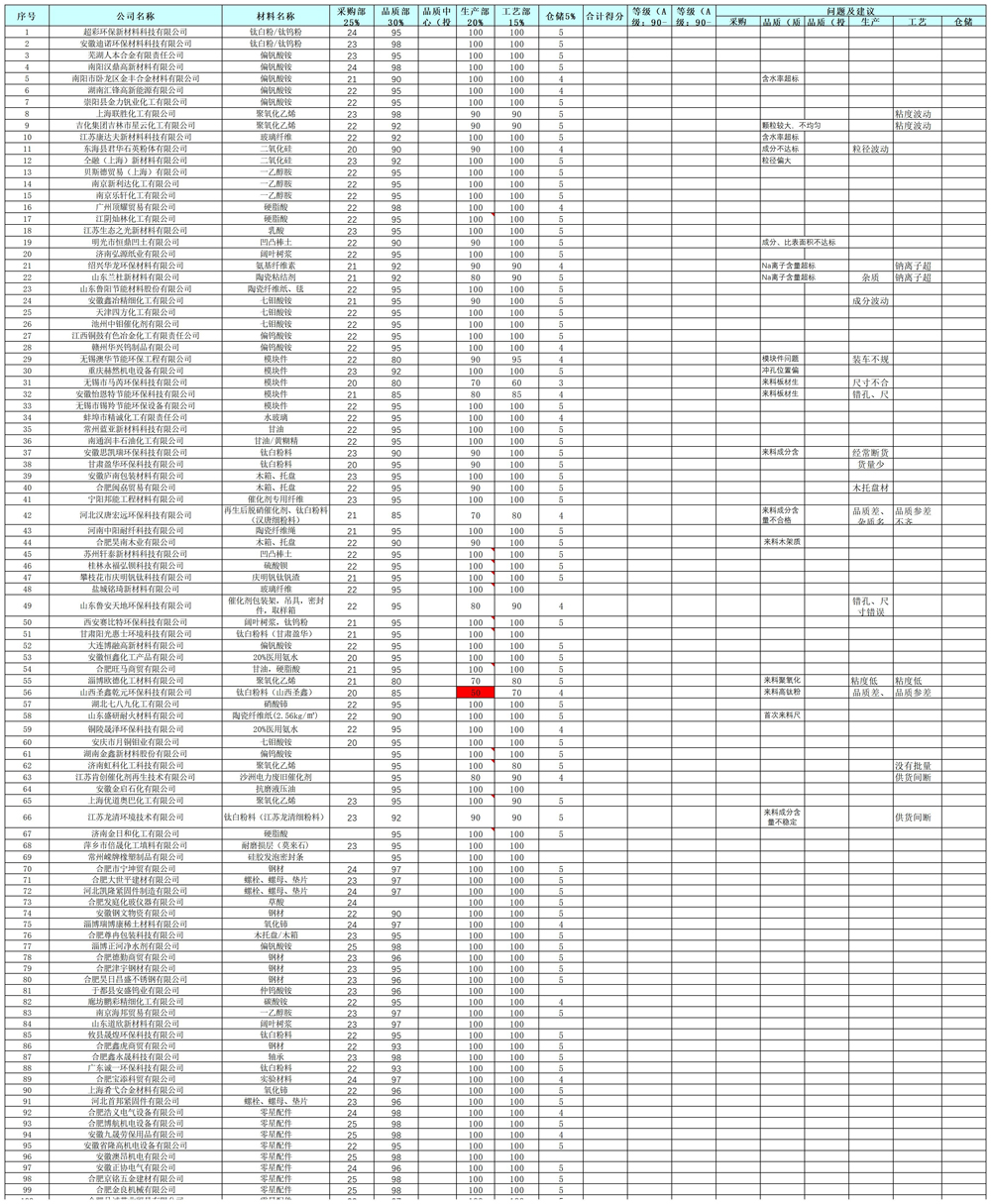 Yy易游体育环保科技现有供应商206家,按其影响程度划分为高、中、低风险供应商,其中低风险比为98%。为了更好的对供应商进行管理,制定有《供应商管理办法》、《供应商绩效评估表》、《供应商准入申批》,按照文件要求制定供应商审计计划并按时进行审计,高中风险供应商审计率为100%。能够确保我司供应商管理要求,降低物料质量风险,保证采购的物料符合质量标准要求。