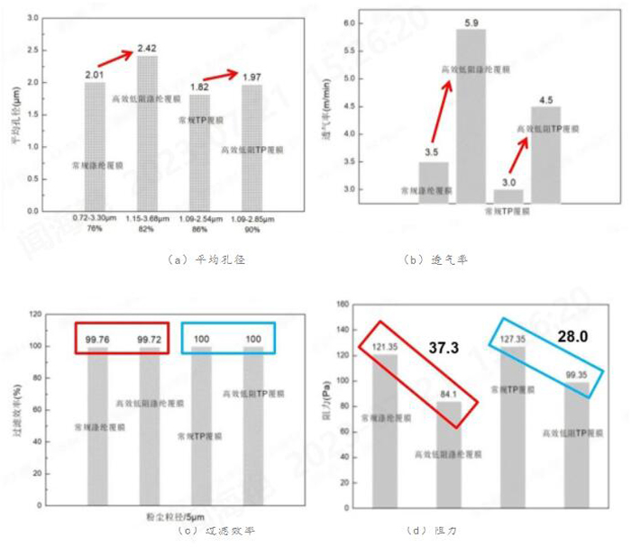 通过膜微观孔结构设计、调控和优化,开发出的PTFE高效低阻膜,孔隙率高、透气率高、孔径小且分布窄,保证除尘滤料过滤效率的同时,降低运行阻力,从而实现高效低阻、节能降碳的作用。