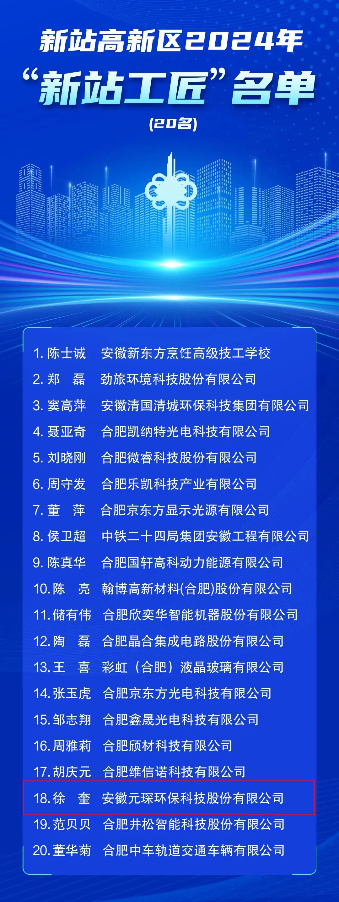 安徽Yy易游体育环保科技股份有限公司徐奎成功上榜!