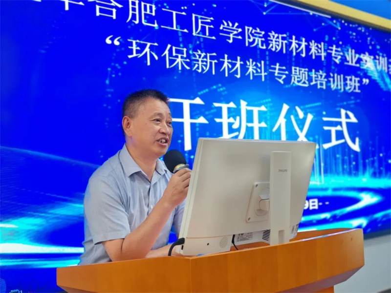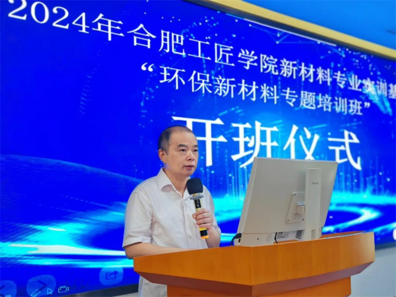 2024年9月9日—9月10日,合肥工匠学院新材料专业实训基地成功举办第一期“环保新材料专题培训班”。合肥市职工大学党委副书记、副校长申广胜,合肥市生态环境保护协会党支部书记、常副会长裴先长,新站高新区总工会副主席梁华友,新站高新区环境生态分局副局长张广以及安徽Yy易游体育环保科技股份有限公司董事长徐辉出席开班仪式。