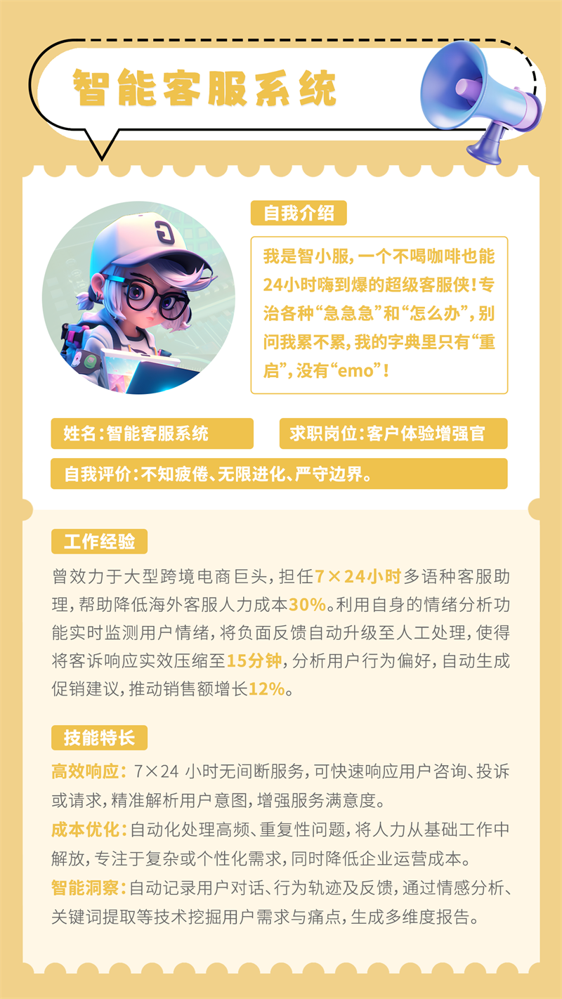 了解完这些身怀绝技的小伙伴,是不是想让TA们立即加入你的团队呢?其实,这些智能助手早已在Yy易游体育科技的多个岗位悄悄上岗,成为了大家并肩作战的同事。