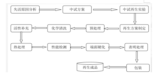 采用哪种再生方法,根据催化剂类型和失效原因来确定,板式催化剂适合采用水洗再生,也可采用热再生或热还原法再生,对于蜂窝式和波纹式催化剂可采用热还原法再生,对于碱金属中毒严重的催化剂,可采用酸液处理再生。实际的催化剂再生工艺中,在以上几种方法结合使用,同时为了补充催化剂表面流失的活性组分,还需在再生溶液中加入活性组分。